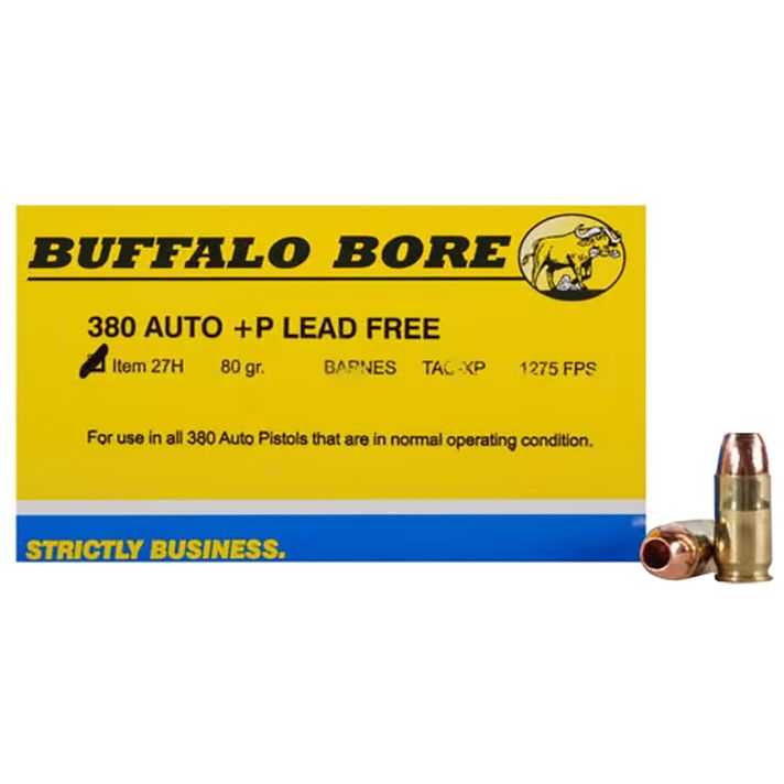 Buffalo Bore Ammunition 27H20 Buffalo-Barnes Strictly Business 380ACP +P 80gr Barnes TAC-XP Lead Free 20 Per Box/12 Case