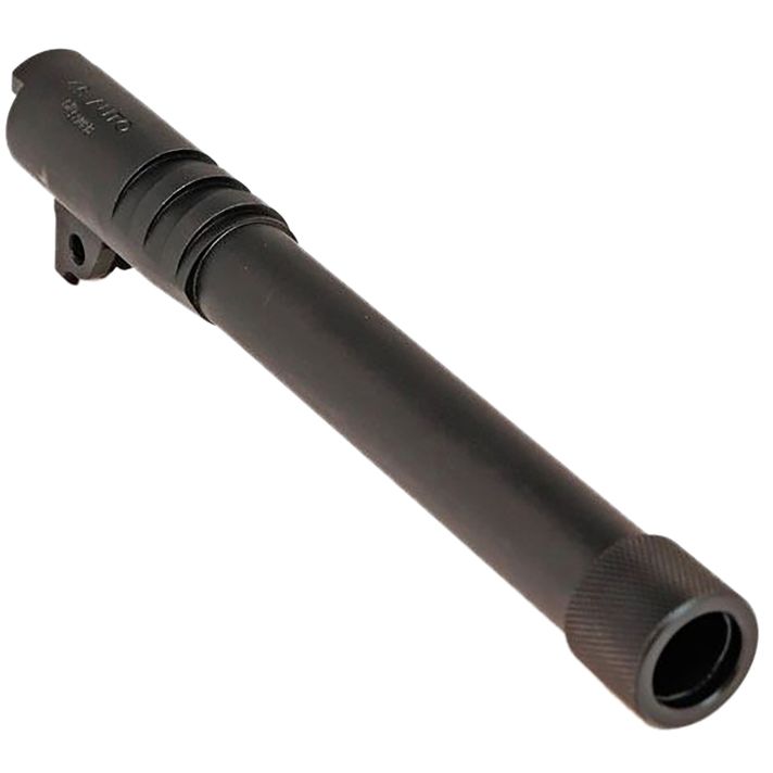 Upgrade or replace the barrel on a 1911 Full-size with this original SIG SAUER part. The threaded barrel is chambered in .45ACP and allows you to attach a suppressor or other muzzle device. A knurled thread cap protects the end when no device is attached. SIG SAUER factory replacement pistol barrels are specially heat-treated for toughness and durability. Includes link and pin. May require fitment.