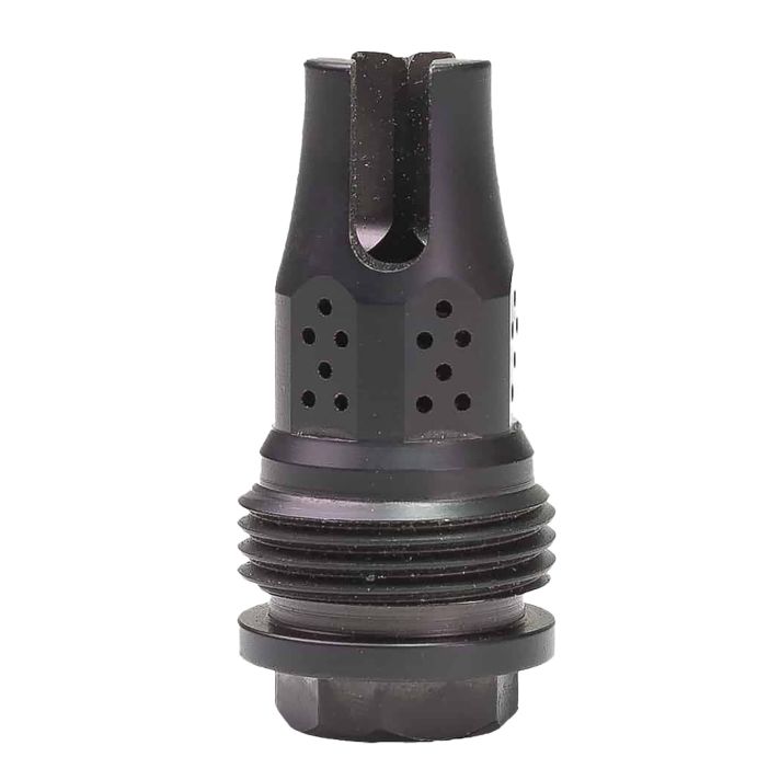 A true triple-use muzzle device, the JK HD War Eagle is a compensator, a flash hider, and a QA mount for JK suppressors! Thanks to its symmetrical design there's no need to time the War Eagle, making installation fast and easy. *Recommended torque spec 35ft/lbs